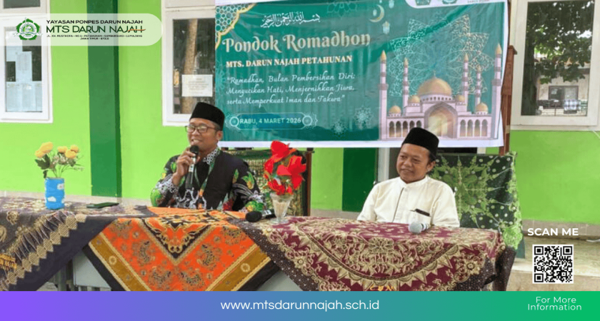 Rangkaian kegiatan Pondok Ramadhan 1447 H di MTs Darun Najah memasuki hari ketiga pada hari Rabu, 4 Maret 2026. Di hari terakhir ini, pihak madrasah menghadirkan pemateri dari KUA Kecamatan Sumbersuko. Penyuluh Agama Islam, Ustadz Subhi Al-Aman, S.H.I, Dalam kegiatan tersebut, pria asli Bekasi ini memberikan kajian keislaman kepada siswa putra yang dilaksanakan di Halaman Madrasah Putra.